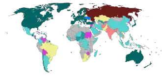 Jako integrální součást Ruské federace uznala Krym v říjnu 2016 Sýrie.[108] Výbor Valného shromáždění OSN odsoudil v roce 2016 na návrh Ukrajiny malou většinou porušování lidských práv na Krymu. Z celkových 193 členských států bylo pro text rezoluce 40 zemí, proti bylo 23 zemí a další se zdržely hlasování.[109]
