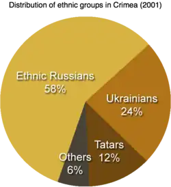 Krymskotatarská menšina politicky podpořila prozápadní vládu v Kyjevě, což situaci na poloostrově také vyostřilo.[49] Část ruskojazyčného obyvatelstva Krymu však ruská vojska přivítala s nadšením jako osvoboditele. Ne všichni krymští Rusové ale s přítomností ruských vojáků souhlasili, několik lidí natočilo video, ve kterém ukázali své ruské pasy a vzkázali Rusku, aby je nezachraňovalo.[50]
