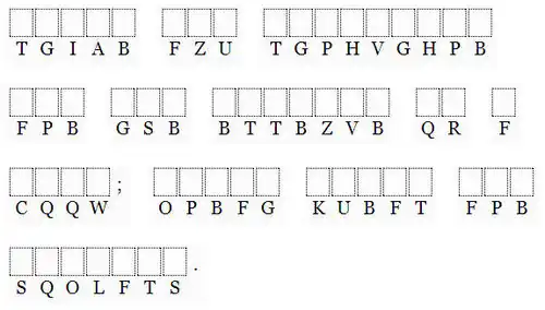 - substituční šifra, kde jednotlivým písmenům otevřeného textu odpovídají jednotlivé znaky kryptogramu. Obvykle se nezohledňuje diakritika. Tyto úlohy jsou oblíbené v anglofonních zemích (zejména v Americe), protože angličtina obsahuje typická seskupení hlásek. V češtině je vhodné v zadání uvést nějakou nápovědu, třeba ve formě hádanky.
