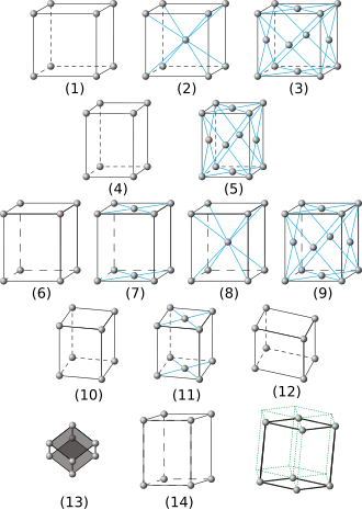 Existuje pouze 14 jedinečných možností, jak v prostoru poskládat elementární buňky a tím vznikne14 prostorových Bravaisových mřížek. Elementární buňka musí splňovat tato Bravaisova pravidla: