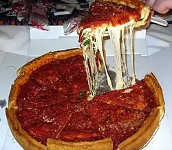 - Chicago se projevují vliv od italských, polských nebo řeckých imigrantů. Chicago je velmi známo svou pizzou, chicagská pizza je podobná spíše koláči, s vysokou vrstvou těsta, který je plněný sýrem a rajčatovou omáčkou. Hot dog na chicagský způsobem je podáván v bulce se zrníčky máku, a kromě párku je plněn i nakládanou zeleninou, a podává se s hořčicí. Mezi další populární chicagské pokrmy patří bagely, gyros, saganaki nebo krupnik.