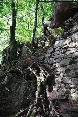 Podoba hradu byla silně ovlivněna členitým stanovištěm. Nižší část zaujalo předhradí, jehož opevnění se dochovalo v podobě valovitého zbytku hradby. Hradní jádro stávalo ve vyšší části skalního útvaru a s předhradím ho spojovala velmi zlomkovitě dochovaná komunikační stavba. Na západní straně jádro ohraničoval ve skále vysekaný příkop a na opačné z něj vybíhalo úzké skalní žebro, na kterém stáhla štíhlá věž se zaoblenými nárožími. Hlavní budovou jádra byl dvouprostorový palác oddělený od příkopu parkánem.[4]