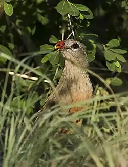 - ↑ Turacos, bustards, cuckoos, mesites, sandgrouse. www.worldbirdnames.org [online]. IOC World Bird List v13.2 [cit. 2023-11-01]. Dostupné online. (anglicky)