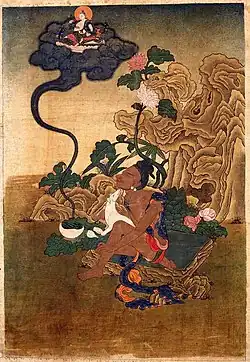 Kukkuripa byl bráhman a žil v Kapilavastu v severní Indii. Snažil se vyřešit otázku existence a nakonec vložil svou důvěru v tantru. Časem si vybral cestu odříkání. Započal svou potulnou kariéru tím, že se pomalu prožebrával směrem k jeskyním v Lumbiní. Jednoho uslyšel jemné kňučení, které vycházelo z podrostu. Podíval se tam a našel mladou fenku, která byla k smrti vyhladovělá. Pohnut k lítosti, zdvihl ji a vzal ji s sebou na dlouhou cestu, dělil se s ní o obsah své žebrací misky a s radostí pozoroval, jak sílí a nabývá zdraví. V době, kdy dorazili do Lumbiní, si Kukkuripa již tak zvykl na její oddanou a srdečnou společnost, že si nedovedl představit život bez ní. Tak vyhledal jeskyni, která byla dost velká pro oba. Každý den, když vyrazil žebrat, stála na stráži a čekala trpělivě, až se vrátí. Kukkuripa byl tak hluboce zabrán do recitování své mantry, že 12 let uběhlo tak rychle, jako jeden rok. Jógi si toho téměř nevšiml, a mezitím získal zázračné síly jasnozřivosti a zázračného vhledu. Známý jako guru Kukkuripa, Psí milenec, vrátil se do Kapilavastu, kde žil dlouhý život v nesobecké službě druhým. Ve správný čas vstoupil do čisté země dákiní spolu s ohromným zástupem svých žáků.