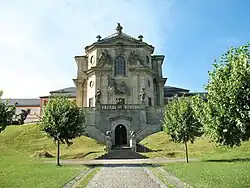 Kostel a vchod do šporkovské hrobky -