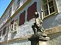 Lázeňský hostinec U Zlatého slunce z r. 1699 se sochami Davida a Goliáše (Herkommana) -