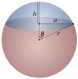 - Polární úhel mezi přímkou od středu koule k vrcholu úseče (pól) a okrajem podstavy úseče