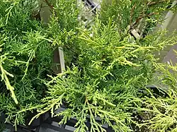 - 'Plumosa Aurea' středně vysoký, široce opačně kuželovitý keř, výška 3- 4 m , široký 1-1.5m jeho žlutá a žlutozelená barva mladých jehlic je velmi dekorativní.