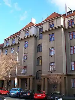 - ↑ Ústřední seznam kulturních památek České republiky [online]. Praha: Národní památkový ústav [cit. 2017-07-05]. Identifikátor záznamu 153066 : činžovní dům - "Domovina". Památkový katalog. Hledat dokumenty v Metainformačním systému NPÚ [1].