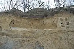 Prozkoumány byly tři zásobnicové jámy vykovitého profilu, které jsou patrné v odkrytém svahu. Ty sloužily primárně k uchování zásob obilí. Po ztrátě této funkce však sloužily jako jámy odpadní, kam se pozvolna ukládal sídlištní odpad. Objekty byly pod dvaceti až třiceti centimetrovou mocnou kulturní vrstvou, na kterou nasedal travní drn. Archeologové ze zásobnicových jam získali bohatou kolekci úlomků keramického materiálu větéřovské kultury (1 650 – 1 500 př. n. l.) Keramika je vypálená do odstínu tmavě hnědé, šedé nebo černé barvy a její povrch je upraven typickým leštěním. Kromě běžné výzdoby se na keramice objevil také sluneční motiv.