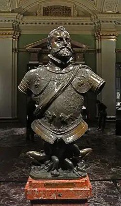 Od 80. let 16. století do Rudolfovy sbírky plastik přispíval sochař Hans Mont (1542/45-po 1582), kterého císaři doporučil Giovanni da Bologna. V Praze nepobyl dlouho a ve funkci dvorního sochaře ho vystřídal Adrian de Vries (asi 1545-1626), jehož díla se stala chloubou Rudolfovy sbírky. Vedle několika reliéfů, které vytvořil pro Rudolfovu kunstkomoru, sochař oslavil císaře třemi bronzovými bustami z let 1603, 1604 a 1607. Dokládá to především nejstarší z nich zobrazující císaře v majestátním postoji (1603, Uměleckohistorické muzeum, Vídeň). Bustu nesou Jupiter a Merkur symbolizující císařovu moc i moudrost. V kunstkomoře byla busta Rudolfa II. dávána do souvislosti s bronzovou bustou císaře Karla V., kterou zhotovil Leone Leoni (1553, Prado, Madrid). Zatímco busta Karla V. stála na první skříni, busta Rudolfa II. od Adriana de Vries (1607) byla umístěna na poslední 20. skříni v Kunstkammer.[8],[3]