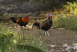 - ↑ a b c GROUW, Hein van; DEKKERS, Wim. Various Gallus varius hybrids: variation in junglefowl hybrids and Darwin's interest in them. Bulletin of the British Ornithologists’ Club. 2019-12, roč. 139, čís. 4, s. 355–371. Dostupné online [cit. 2022-11-28]. ISSN 0007-1595. doi:10.25226/bboc.v139i4.2019.a9. (anglicky)