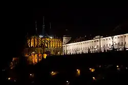![]() Kutná Hora: panorama města se siluetami kostela sv. Jakuba a chrámu sv. Barbory | |