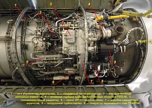 - Kompresor: Axiální, 2 stupně dmychadla, 2stupňový nízkotlaký, 6stupňový vysokotlaký