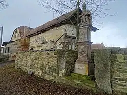 - Železný kříž na kamenném podstavci z roku 1860 uprostřed hřbitova. Kříž věnovali manželé Franz a Johanna Walovi. Na kamenném podstavci připevněna pamětní deska s nápisem z roku 1909 o obnově kříže. Na bocích výjevy z biblického života. Na hřbitově jsou patrny staré náhrobky z první poloviny 20. století a márnice. Hřbitov je značně zanedbaný a poničený.