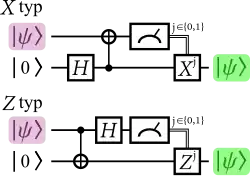 - ↑ a b c d e GOTTESMAN, Daniel; CHUANG, Isaac L. Demonstrating the viability of universal quantum computation using teleportation and single-qubit operations. Nature. 1999-11, roč. 402, čís. 6760, s. 390–393. Dostupné online [cit. 2023-08-08]. ISSN 1476-4687. doi:10.1038/46503. (anglicky)