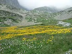 Poukazuje na bohatou vegetaci horských luk této lokality. [1]