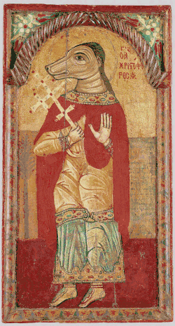 Kynokefalos může mít úlohu kladného hrdiny (například staroegyptský bůh Anup nebo svatý Kryštof) nebo zápornou, například ve středověkých cestopisech se objevují jako nepřátelé Evropanů a obyvatelé východoasijských zemí, s nimiž je nutno bojovat.