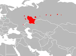 Mapa rozšíření Kypčacko-Bolgarských jazyků