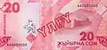 Bankovky v oběhu mají hodnoty 20, 50, 100, 200, 500, 1 000 a 5 000 somů.