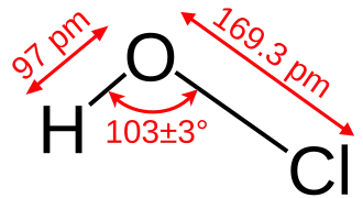 Ve vodném roztoku kyselina chlorná částečně disociuje na chlornanový anion ClO−: