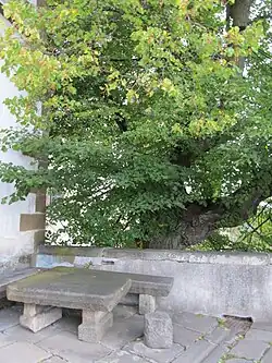 Lípa roste z trávníku pod terasou, takže ze samotné terasy s kamenným stolem je možné hledět přímo do koruny stromu. Z kořenů stromu vyrůstá velké množství výmladků.