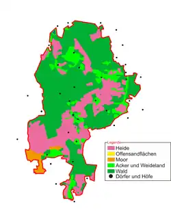 Lüneburské vřesoviště je součástí Severoněmecké nížiny. Leží mezi řekami Aller a Labe. Geologický podklad oblasti tvoří ledovcové usazeniny. Stejně se nazývá i zdejší chráněné území, které se rozkládá kolem nejvyššího bodu Wilseder Berg (169 m n. m.).[1]