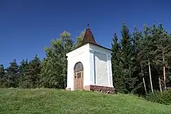 Na pahorku západně od kostela vznikla v první polovině 18. století čtyřboká mešní kaple, zaklenutá křížovou klenbou s nárožními pilastry. Uvnitř malovaný křídlový oltářík se sochou svaté Barbory. Dle pověsti z tohoto místa žehnal svatý Vojtěch své rodné vlasti.