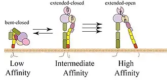 - ↑ SHIMAOKA, Motomu; TAKAGI, Junichi; SPRINGER, Timothy A. Conformational regulation of integrin structure and function. Annual Review of Biophysics and Biomolecular Structure. 2002, roč. 31, s. 485–516. PMID: 11988479. Dostupné online [cit. 2022-04-29]. ISSN 1056-8700. doi:10.1146/annurev.biophys.31.101101.140922. PMID 11988479.