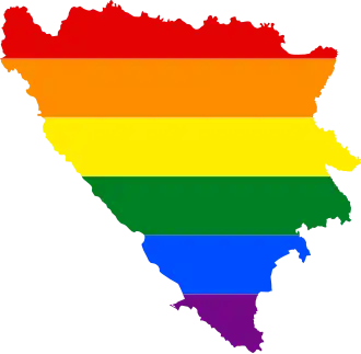 - ↑ Better protection of LGBTI persons through the amendments to the Anti-discrimination Law of BiH [online]. 2016-07-14 [cit. 2023-12-10]. Dostupné online. (anglicky)