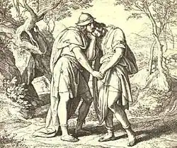 | „ | Křusno mi pro tebe, bratře můj Jonatáne, velmi si mi byl milý. Tvoje láska bývala mi vzácnější, než láska žen. Jak matka jedináčka miluje, tak já jsem miloval tebe. | “ |