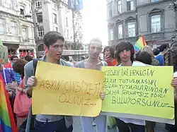 - ↑ LGBT gains recognition from government for first time. www.todayszaman.com [online]. [cit. 01-12-2014]. Dostupné v archivu pořízeném dne 21-05-2015.