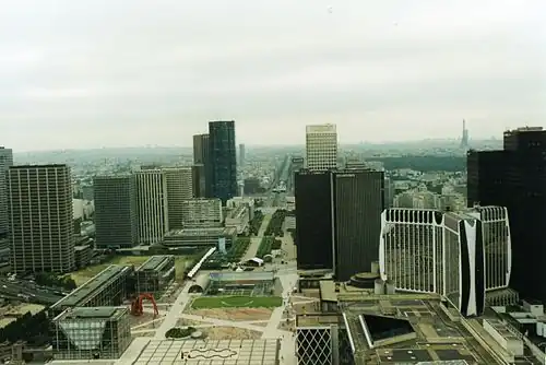Oficiálně vznikla obchodní čtvrť založením společnosti Etablissement Public d'Aménagement de La Défense (Veřejný podnik pro výstavbu La Défense). V roce 1958 pak byl ze soukromých zdrojů postaven jako pilotní projekt výstavní palác CNIT neboli Centre des nouvelles industries et technologies (Centrum moderního průmyslu a technologií) a poté i další moderní budovy, tzv. První generace. Žádná z nich však po dokončení neměřila více než 100 m. První moderní kancelářskou stavbou zde byla až v roce 1966 Tour Nobel (nyní Tour Initiale). Na začátku 70. let zde začaly vznikat nové mrakodrapy, mrakodrapy druhé generace. Rychlý rozlet výstavby ale zastavila ropná krize v roce 1973. Třetí generace mrakodrapů se objevila o dalších deset let později. K výročí 200 let Velké francouzské revoluce roku 1989 byla otevřena La Grande Arche – Velký oblouk (též Archa), jež stojí v ose Avenue des Champs-Élysées. Po výstavbě Tour Montparnasse s výškou 210 m přímo v historické městské zástavbě v roce 1973 mohly být nové mrakodrapy v Paříži nadále stavěny už pouze zde. Tuto restrikci však v roce 2010 zrušilo nové nastavení stavebních výškových limitů umožňujících komerčním budovám dosahovat výšky až 180 m.[1]