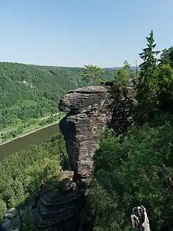 - Necelý kilometr od středu obce je položena pískovcová vyhlídková terasa Belvedér s výhledem na kaňon Labe, v jejíž blízkosti stojí hotel jménem Belveder. Srázy, spadající k řece, jsou od roku 2010 chráněny coby národní přírodní rezervace Kaňon Labe.