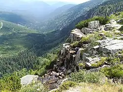 ![]() Pohled na Labskou boudu, která se nachází na okraji Labského dolu | |