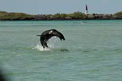 - ↑ a b PÁEZ‐ROSAS, Diego; VACA, Leandro; PEPOLAS, Roberto; WOLLOCOMBE, Richard; DE ROY, Tui; RIVAS‐TORRES, Gonzalo. Hunting and cooperative foraging behavior of Galapagos sea lion: An attack to large pelagics. S. 386–391. Marine Mammal Science [online]. 2020-01 [cit. 2021-11-18]. Roč. 36, čís. 1, s. 386–391. doi:10.1111/mms.12646. (anglicky)
