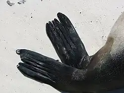 - ↑ SALAZAR, Sandie. Impacts of the Jessica oil spill on sea lion (Zalophus wollebaeki) populations. S. 313–318. Marine Pollution Bulletin [online]. 2003-07 [cit. 2021-11-16]. Roč. 47, čís. 7–8, s. 313–318. doi:10.1016/S0025-326X(03)00160-7. (anglicky)