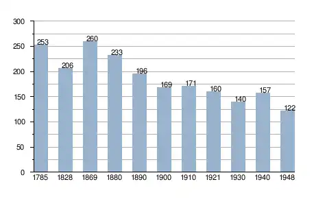 Vývoj počtu obyvatel od roku 1869 po 1948 vyjadřuje následující graf [1] :