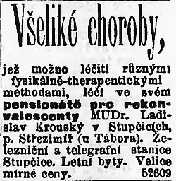 - ↑ a b c d MUDr. Ladislav Krouský. Národní listy. 11. 1929, roč. 69, čís. 300, s. 2. Dostupné online.