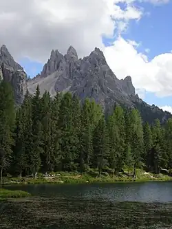Lago d'Antorno a horská skupina Cadini di Misurina -