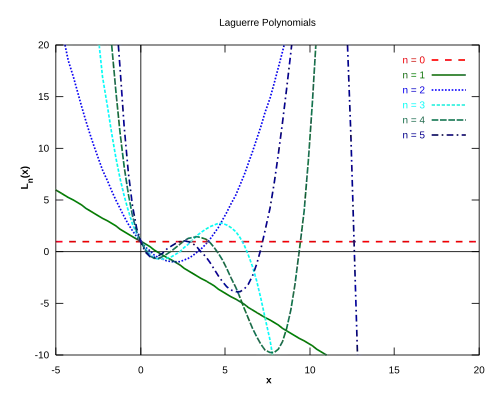 Následuje tabulka prvních několika Laguerrových polynomů: