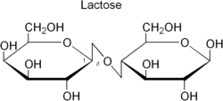 Laktóza je disacharid označovaný také jako mléčný cukr, který tvoří podle druhu mléka 2–8 % pevných látek v mléce,[1] i když existuje i mléko se sníženým množstvím laktózy. Laktóza se vyskytuje v mateřském mléce savců. Molekula se skládá z galaktózy a glukózy, spojených β-(1→4) glykosidickou vazbou.[2]
