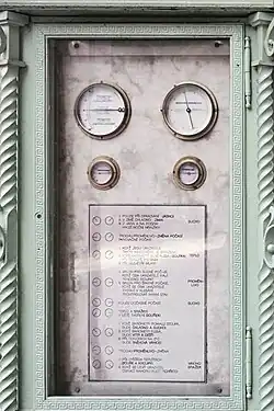 - ↑ a b c d e f g TYDLITÁT, René; TREJBAL, Jan. Povětrnostní sloupy: Průvodce po objektech drobné architektury s meteorologickými přístroji. 1. vyd. Praha: Český hydrometeorologický ústav, 2019. 276 s. ISBN 978-80-87577-97-4. S. 111, 246–250.