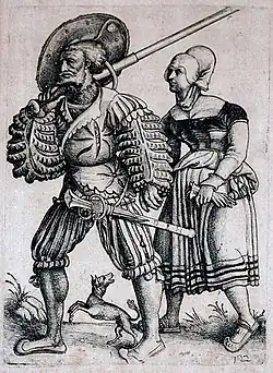 Co činilo lancknechty tak nápadnými byl jejich propracovaný oděv, který převzali od Švýcarů. Kabátce, prořezávané vepředu, na zádech a zejména na rukávech, podložené látkou z pokud možno kontrastující barvy. Kalhoty byly v této době již samonosné, rozdělené na svrchní a spodní část (bylo velice módní mít jedno stehno odhalené) a končily nad pasem. Kabátec byl krátký, ponejvíce s diagonálním zapínáním po levé straně a mohl se přivazovat ke kalhotám jako doublety v předcházejícím období. Na nohou měli vojáci typickou renesanční obuv – volské tlamy a kachní zobáky, v teplejších oblastech můžeme potkat i sandály.
