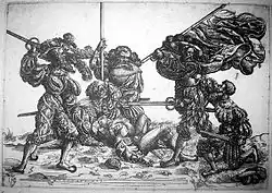 Lancknechti, cíleně formovaní jako napodobenina švýcarských žoldnéřů s dlouhými píkami (a zpočátku využívající služeb švýcarských instruktorů), příležitostně přispívali k porážkám obávaných Švýcarů, jejichž bitevní formace, příliš spoléhající na chladné zbraně používané na krátkou vzdálenost, začaly být zranitelné vůči vzrůstající palebné síle arkebuz a dělostřelectva. Francouzské dělostřelectvo nebo španělští střelci vnesli zmatek do švýcarských formací a lancknechtské píky blokovaly případný útok, o který by se vyčerpané švýcarské útočné řady mohly pokusit.