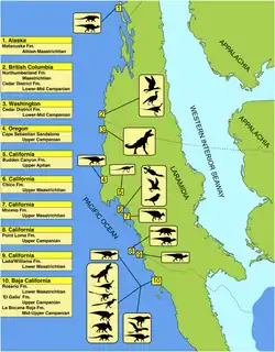 - ↑ Susannah C. R. Maidment, Christopher D. Dean, Robert I. Mansergh and Richard J. Butler (2021). Deep-time biodiversity patterns and the dinosaurian fossil record of the Late Cretaceous Western Interior, North America. Proceedings of the Royal Society B: Biological Sciences. 288 (1953): 20210692. doi: https://doi.org/10.1098/rspb.2021.0692