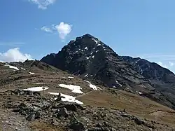 Hlavní vrchol Las Sours (3008 m, vlevo) a Piz Muragl (vpravo) -