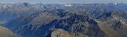 pohled ze západního vrcholu do údolí Oberengadin.
