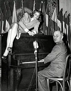 - ↑ Lauren Bacall sits atop a piano while Vice President Harry S. Truman plays at the National Press Club Canteen [online]. Harry S. Truman Presidential Library and Museum, February 10, 1945 [cit. 2021-03-10]. Dostupné v archivu pořízeném dne 2018-09-26.