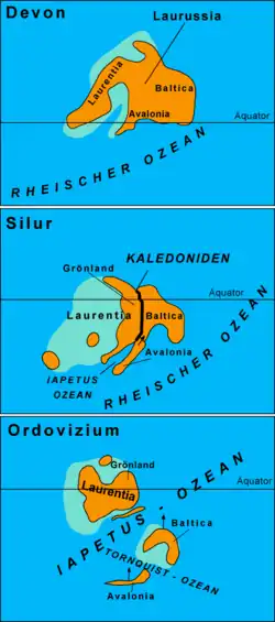 | Arktida | → | Nena | ↗ | ↘ | Západní Gondwana | → | Protolaurasie | ↗ | ↘ | Gondwana | ↗ | ↘ | Laurasie | → | → | Severní Amerika | ||||||||
